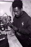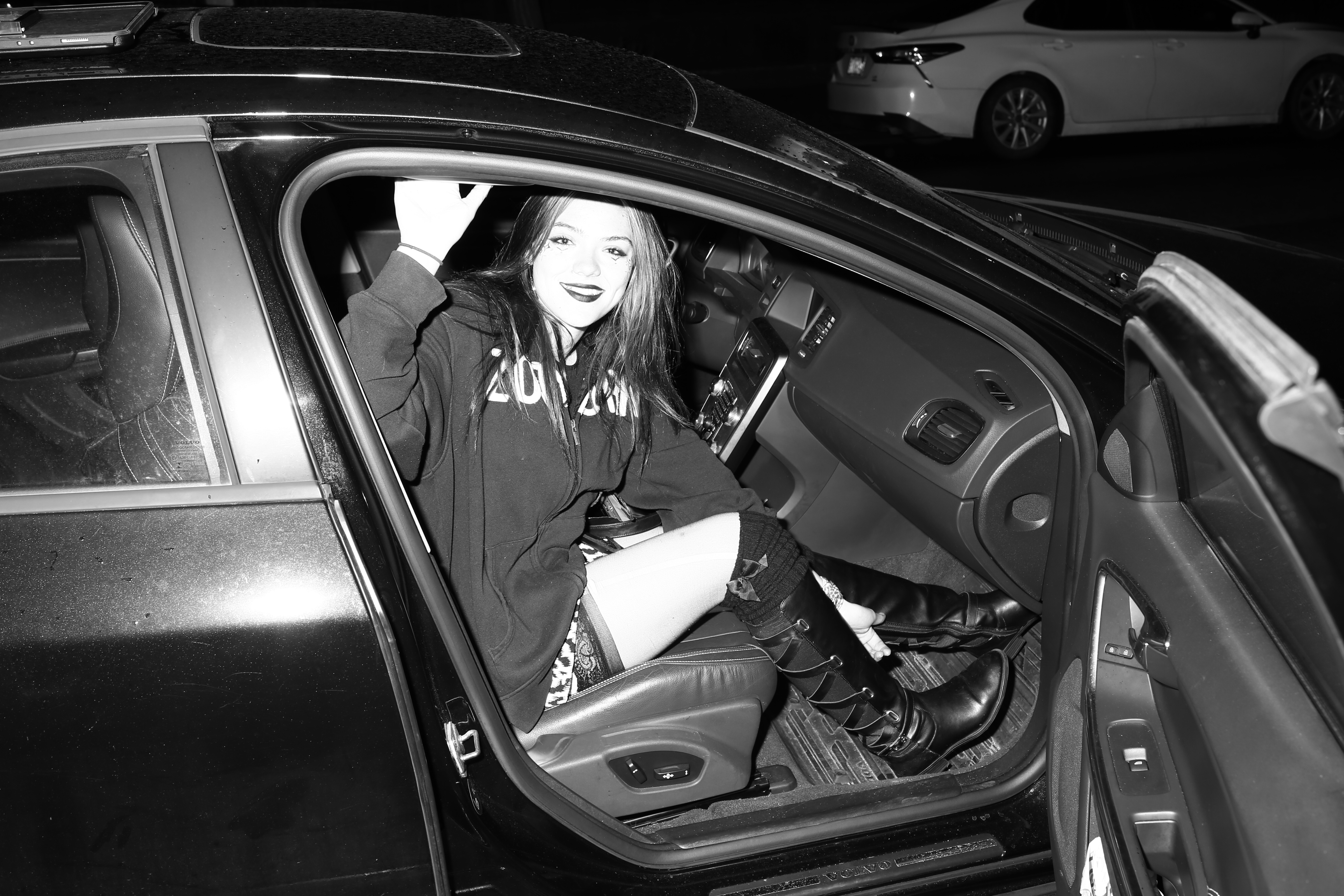 car, black and white style, nighttime, suv, candid moment