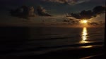 The photograph captures a serene beach scene with gentle waves crashing onto the sandy shore. The ocean's deep blue water transitions to lighter shades as it approaches the shore, creating a beautiful gradient effect. The waves are small and frothy, with white foam visible where they meet the sand. The overall mood is calm and peaceful, evoking a sense of tranquility and natural beauty. Notable details include the smooth texture of the sand and the rhythmic motion of the waves, which add a dynamic element to the otherwise still landscape.
