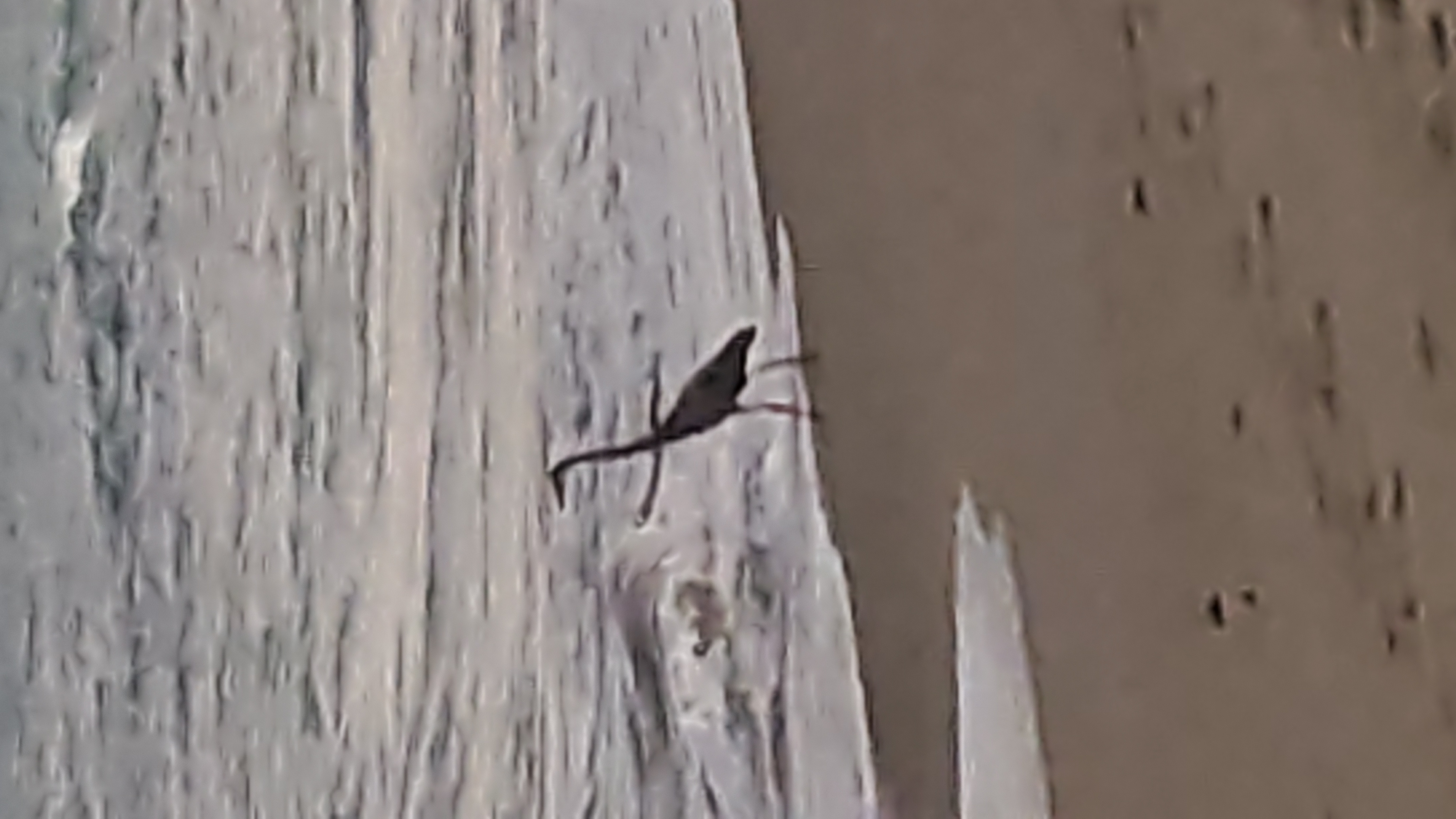 The photograph depicts a close-up view of what appears to be a textured surface, possibly a wall or floor, with a distinct pattern of raised lines and bumps. The color palette is muted, with shades of gray and beige dominating the scene. A small, dark object, resembling a piece of metal or a tool, is visible on the right side of the image, partially obscured by the texture. The overall mood of the photograph is somewhat abstract and enigmatic due to the lack of clear context or identifiable objects. The lighting is soft, casting gentle shadows that enhance the three-dimensional quality of the surface.