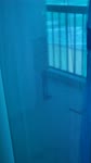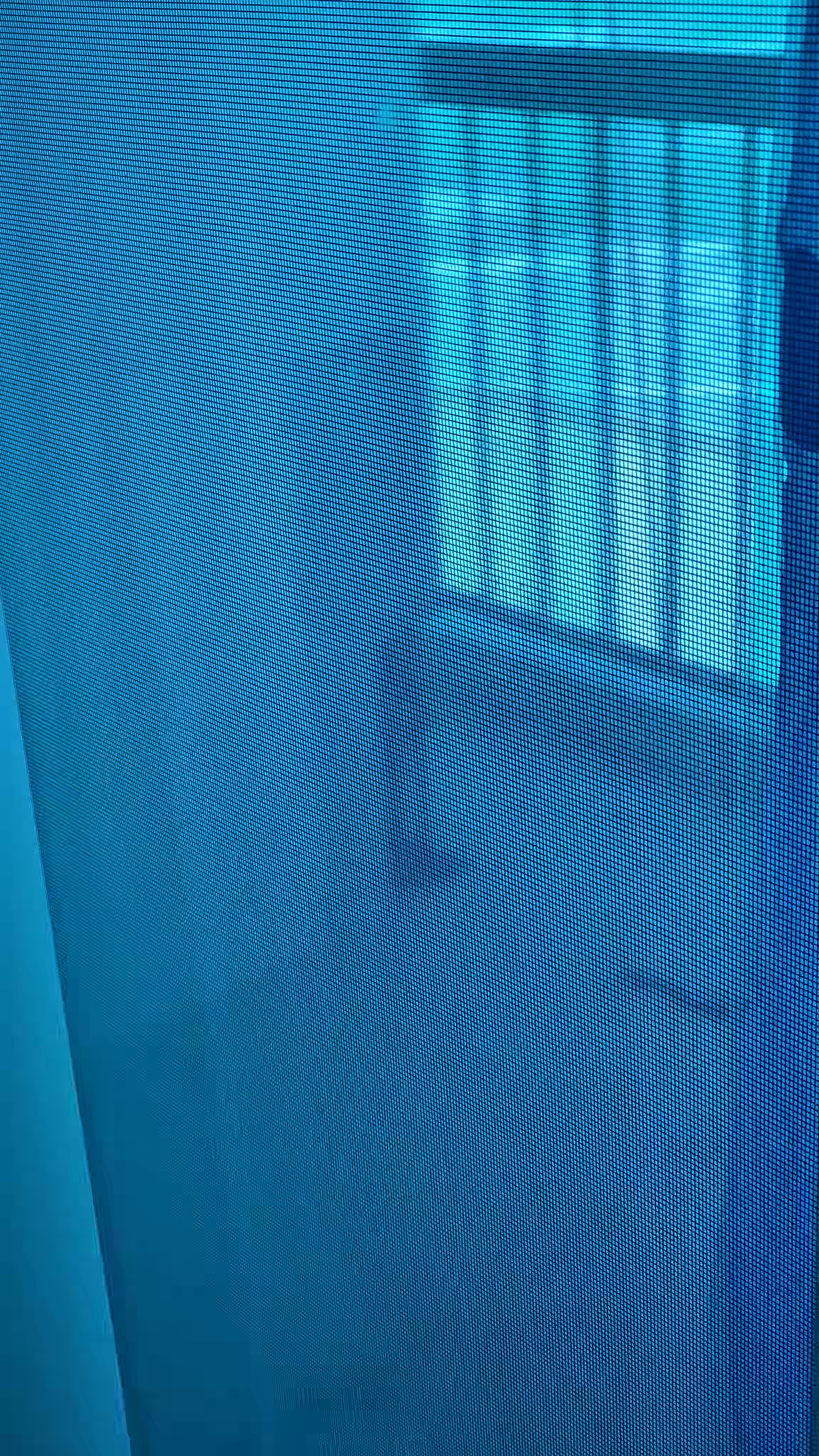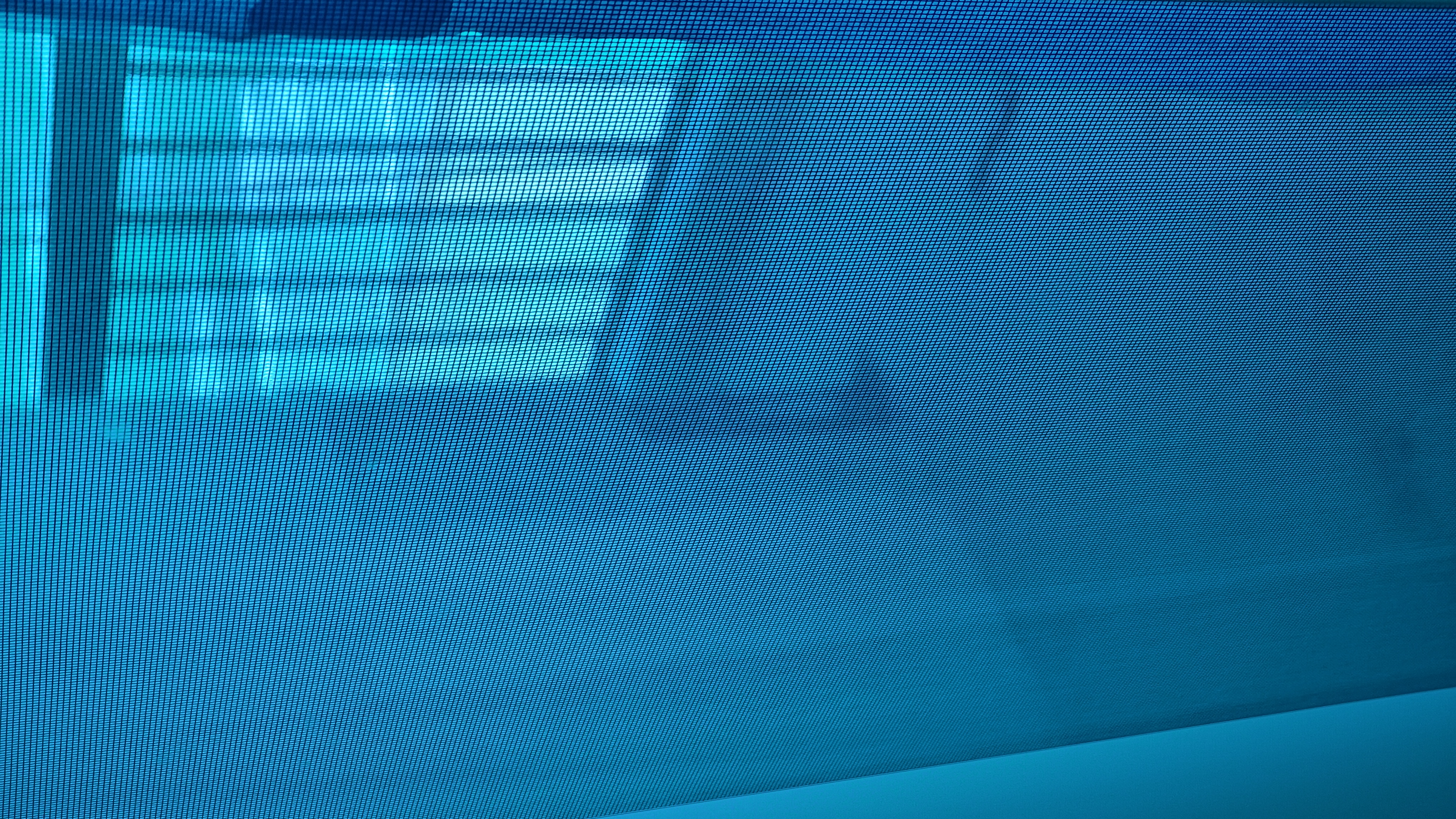The photograph depicts a close-up view of a computer screen displaying a blue background with a subtle gradient effect. The screen appears to be turned off or showing a very faint image, as there is no visible content on the display. The blue color dominates the scene, creating a cool and somewhat monochromatic atmosphere. The edges of the screen are slightly blurred, suggesting that the photo was taken from a distance or with a shallow depth of field. The overall mood of the image is calm and serene, with the blue tones evoking a sense of tranquility and simplicity.